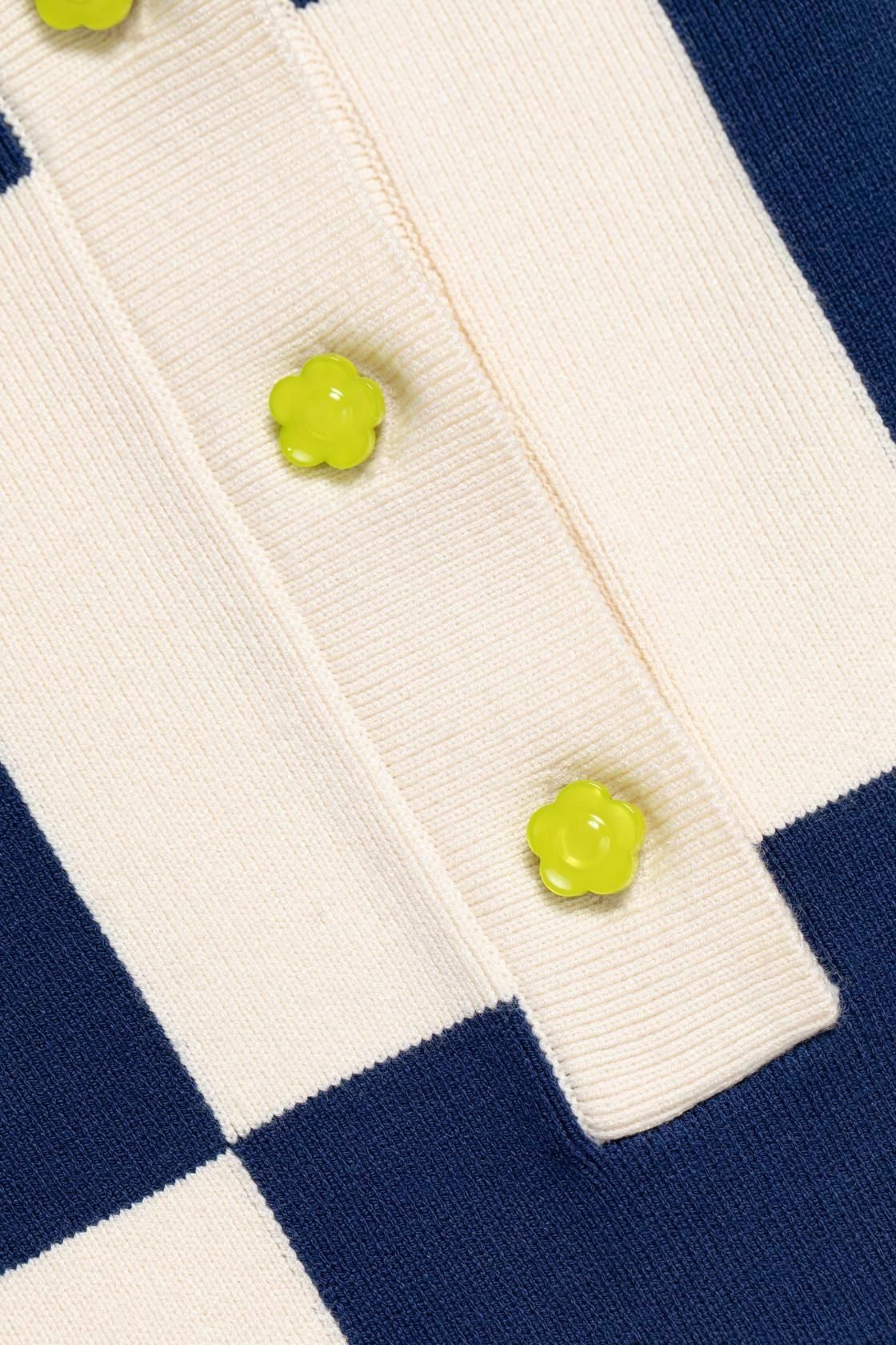 ボタンは花の形をしていて、1ポイントの大切なアクセントに。