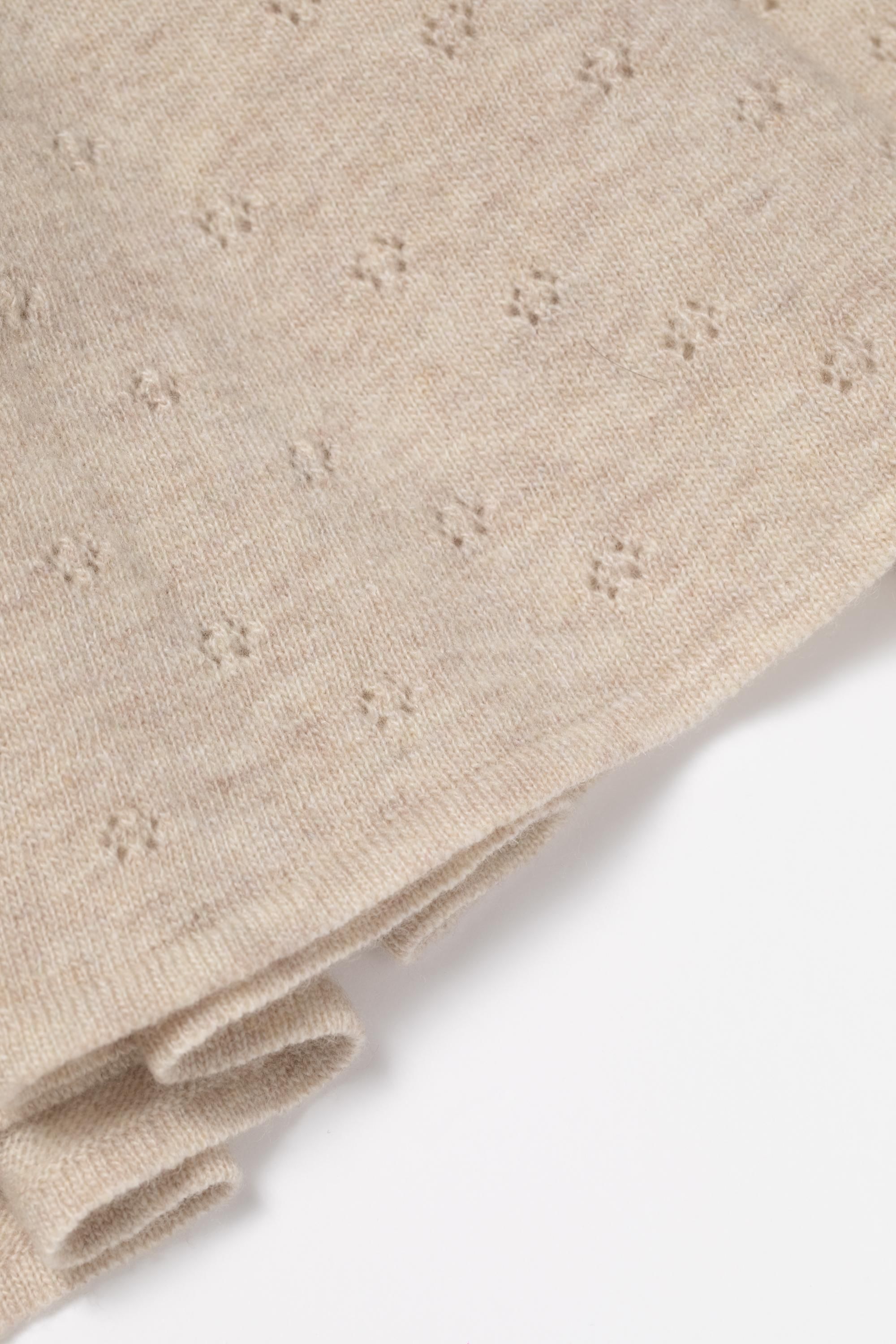 ラムズウールという、羊が生まれてから初めての毛刈りで出来た糸を使っているので、とても柔らかいです。